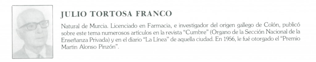 Por el señor alcalde-presidente, y teniendo en cuenta los comentarios sostenidos en más de una ocasión con miembros de la Junta Municipal de Educación, con numerosos vecinos de la localidad, como asimismo con concejales de la Corporación; comentarios nacidos de la lectura hecha por los maestros de la villa en reuniones particulares y en escuelas nacionales sobre los trabajos de investigación histórica llevados a cabo por el culto farmaceútico de Murcia, don Julio Tortosa Franco, en que demuestra claramente que Cristóbal Colón era español, propone a la Corporación, interpretando el sentir de todos los comentarios antedichos, que se declare en esta sesión que COLÓN FUE SIEMPRE ESPAÑOL.